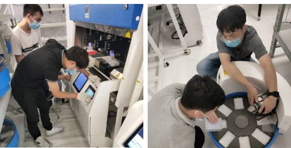 25日,在3组“猎鹰号”气膜实验室的仪器设备安装完成后,技术服务团队又马不停蹄将新送达的仪器设备安装到另外3组“猎鹰号”气膜实验室。与此同时,他们还需兼顾已启用的3组实验室的仪器设备运行、实验人员操作培训等。