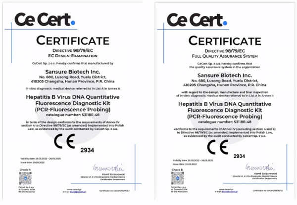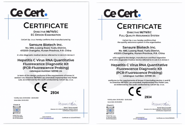 5月20日,hth.com华体会生物自主研发的乙型肝炎病毒核酸检测试剂盒(PCR-荧光法)、丙型肝炎病毒核酸检测试剂盒(PCR-荧光法)和人类免疫缺陷病毒1型核酸测定试剂盒(PCR-荧光探针法)成功通过欧盟公告机构认证(CE IVDD List A),成为中国第一家核酸检测试剂荣获欧盟CE最高认证的企业。
